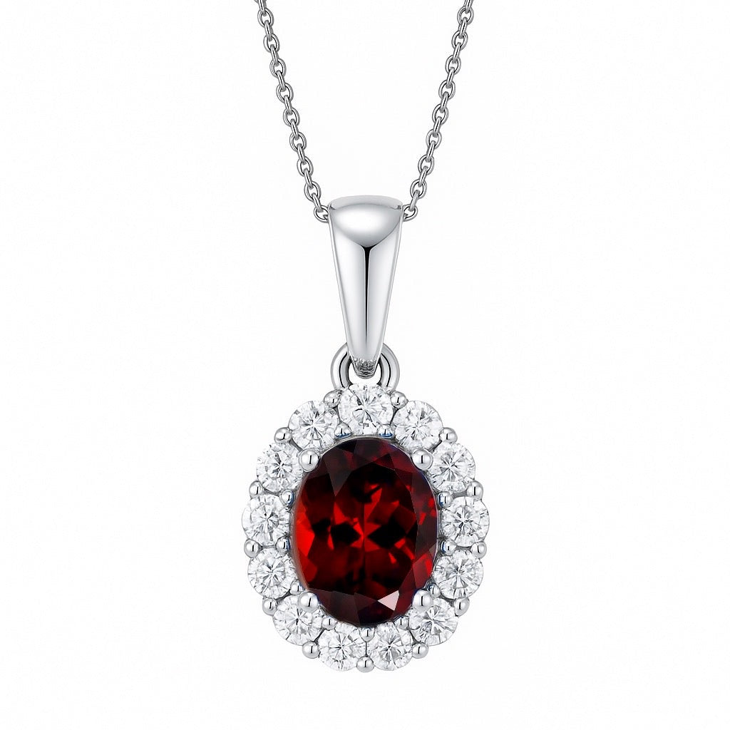 “BURGUNDY VICTORIA” Silver Plated Necklace with Zirconia Pendant.