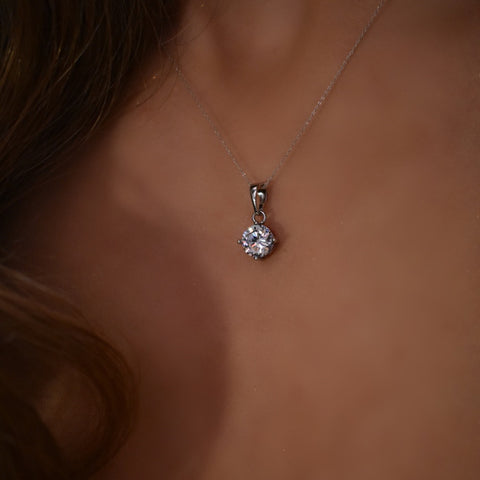 “HOLLY” Silver Plated Necklace with Zirconia Pendant.